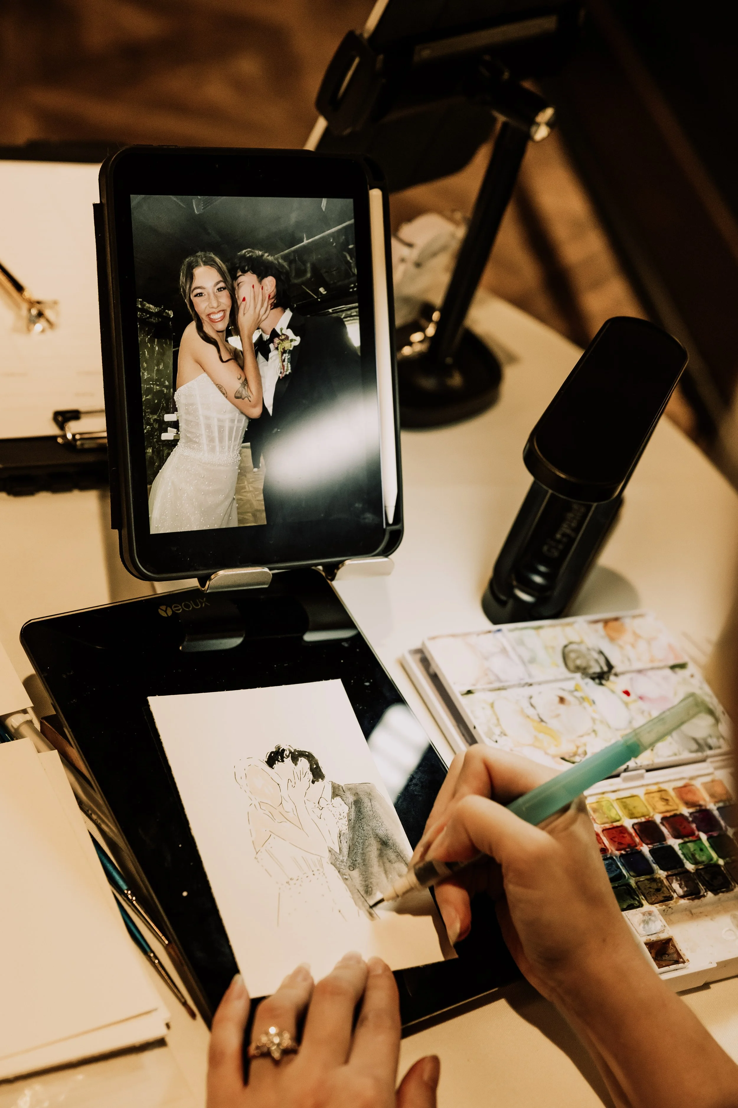 This Old Hollywood Glamour-themed styled shoot at the Moxy hotel was the very first styled shoot I planned. We had a live watercolor painter, Watercolor Mercantile, and everyone left with their very own watercolor portrait!